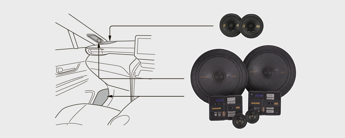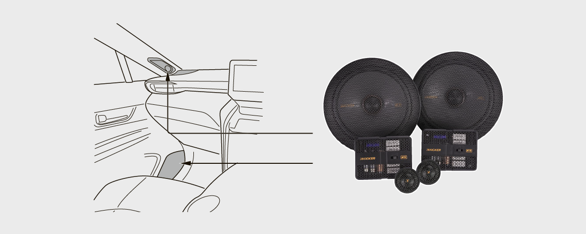 ダッシュ左右7cmミッドハイスピーカーKSC2704+Aピラーツイーター/フロントドア左右16.5cmセパレートスピーカーKSS6704+取り付けキット一式