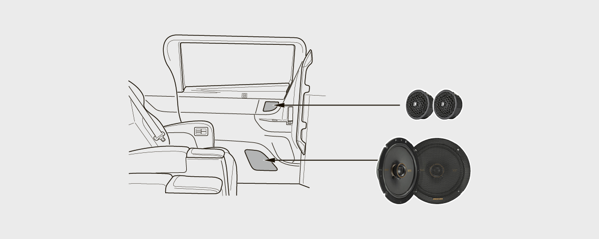 リアドア左右2センチツイーターKST2004+リアドア左右16.5センチスピーカーKSC6704(合計4スピーカー)+ 取り付けキット一式