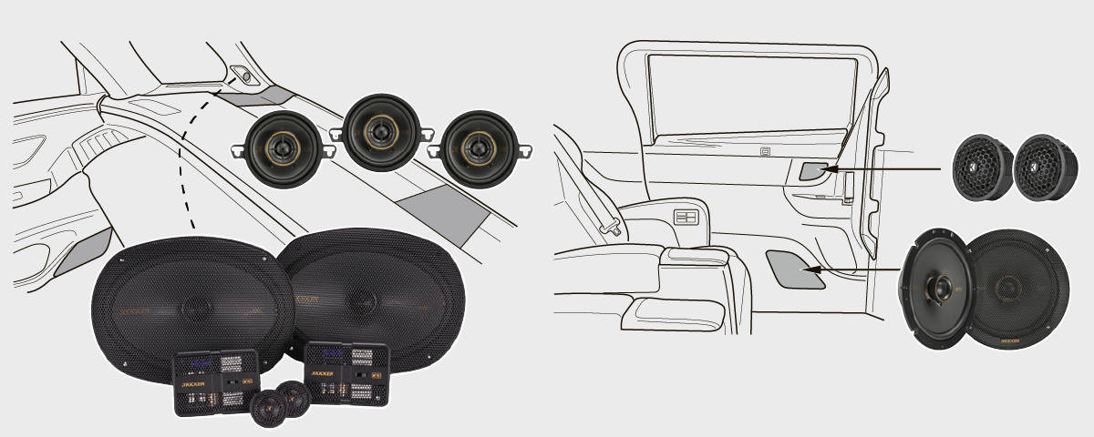 5-③ダッシュ左右+ダッシュセンター+Aピラー左右+フロントドア左右+リアドアスピーカー左右(ツイーター左右とウーファー左右)