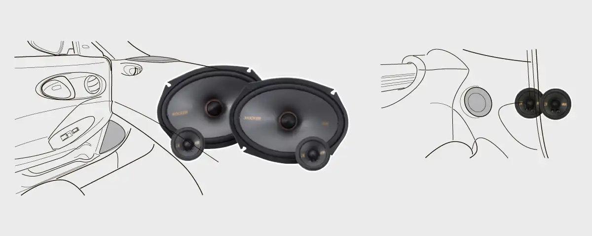 ダッシュ左右7cmミッドハイスピーカー/フロントドア左右 16×23cmスピーカー KSS269(計4スピーカー)+取り付けキット一式